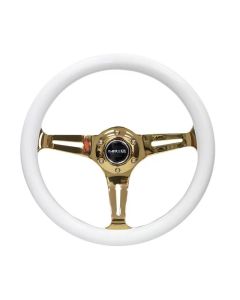 NRG Classic Wood Grain Steering Wheel (350mm) White Grip w/Chrome Gold 3-Spoke Center - ST-015CG-WTSpecial Price $135.99 Regular Price $160.00 -