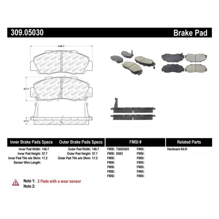 In summary, the StopTech Sport Brake Pads with Shims/Hardware Front- STOP-309.05030 are the perfect choice for drivers who refuse to compromise on performance, safety, or comfort. Upgrade your vehicle's braking system today and experience the difference that precision engineering and high-quality materials can make.
